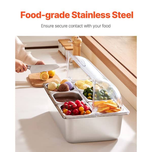 Countertop Food Serving Display Container 6-Pan Stainless Steel Food Serving Buffet Condiment Dispenser Chafing Dishes