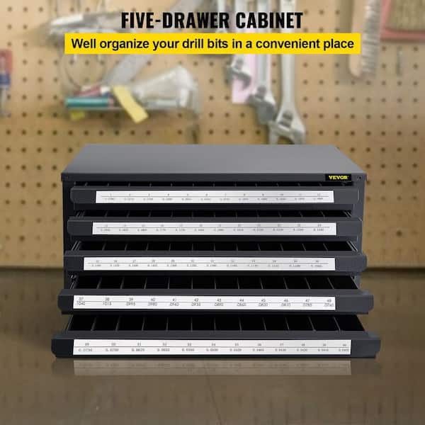 Drill Bit Dispenser Cabinet 5-Drawers Drill Bit Organizer 60-Compartment for Jobber Length Wire Gauge Sizes #1 to #60