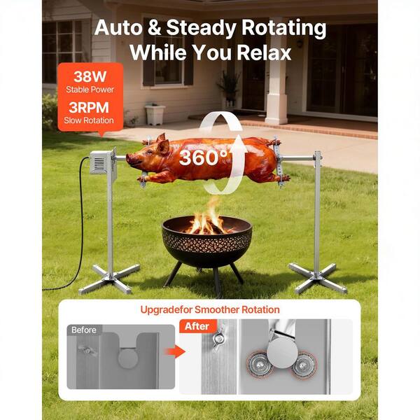 Electric BBQ Rotisserie Grill Kit, 46 In. 90 lbs. Capacity, Automatic 42 Watt Height Adjustable Universal Stand, Kit