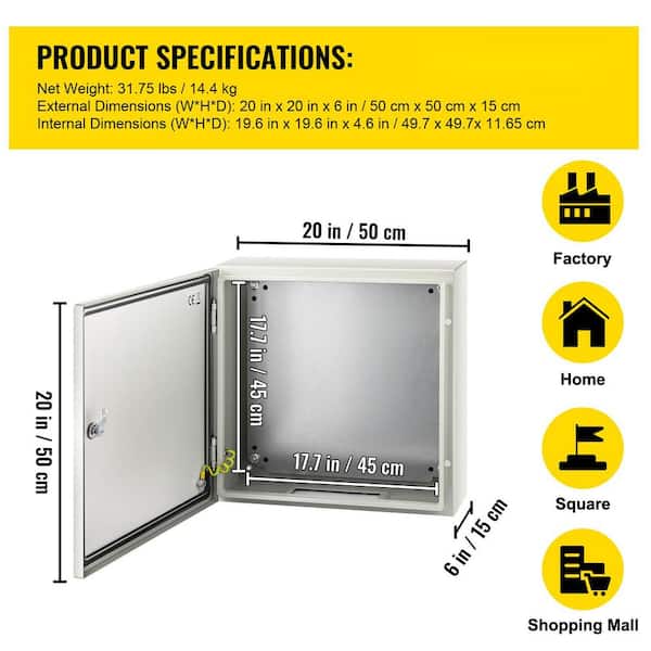 Electrical Enclosure 20 in. x 20 in. x 6 in. NEMA 4X Carbon Steel IP66 Waterproof and Dustproof Electrical Junction Box