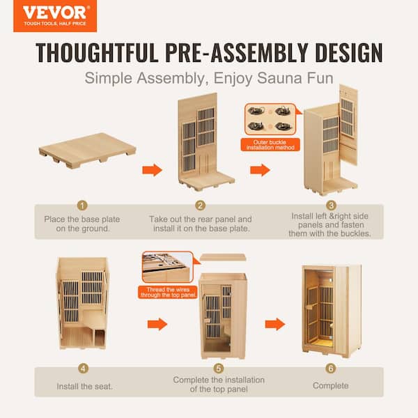 Far Infrared Wooden Sauna 1-Person Indoor Hemlock Sauna Infrared Sauna Spa with Tempered Glass Door 1140Watt Indoor Use