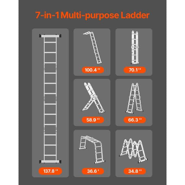 Folding Ladder 7-in-1 Tall Step Ladder a Frame 3-Step Adjustable Telescoping Ladder 12 ft. Reach Height Multi-Position