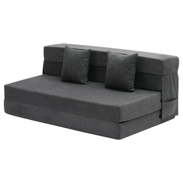 Folding Sofa Bed, Composite Outdoor Couch with Cushion Guard Dark Gray Cushions 3-in-1-Foldable Couch Bed Washable Cover
