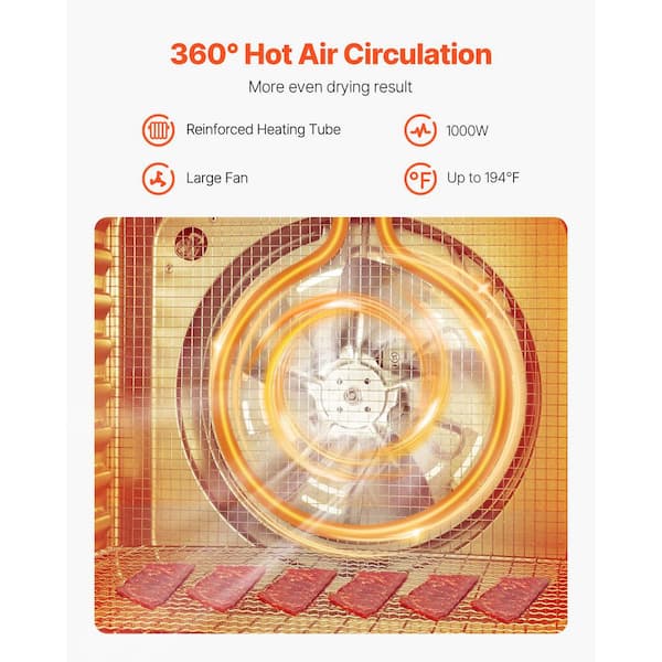 Food Dehydrator Machine, 10 Stainless Steel Trays, 1000W Electric Food Dryer with Adjustable Temperature & 24-Hour Timer