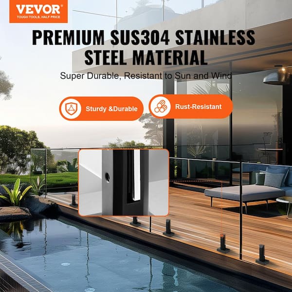 Glass Clamp 10 pcs 6.3 in. H x 3.94 in. W Black Stainless Steel Stair Railing Kit Railing Bracket for 0.31 to 0.47 in.