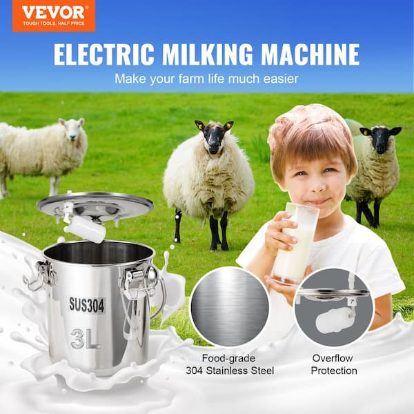 Goat Milking Machine, 3 L 304 Stainless Steel Bucket, Electric Automatic Pulsation Vacuum Milker, Portable Milker