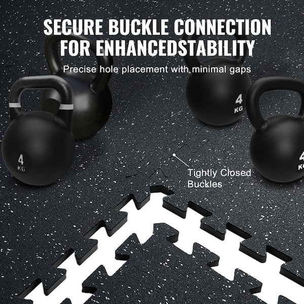 Gym Floor Mats 12 Tiles Rubber Top with EVA Foam 25 in. x 25 in. x 0.56 in. T with 48 sq. ft. Coverage Black and White