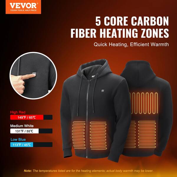 Heated Hoodie,Unisex Heated Sweatshirt with Battery Pack, Zip Up Electric Jacket, Lightweight Warm Heated, XL Size Black