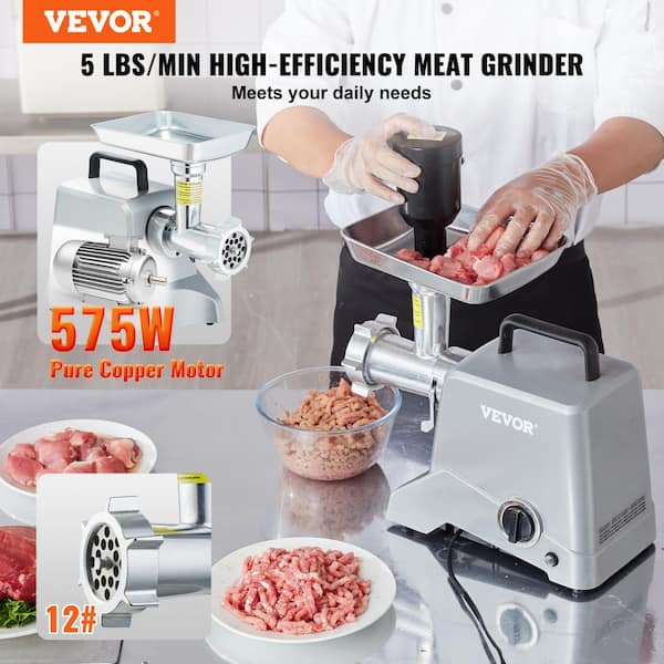 Heavy-Duty 5LB/Min Electric Meat Mincer in Silver 0.77HP 575W(800W MAX), Aluminum, Sausage Stuffer and ETL Listed