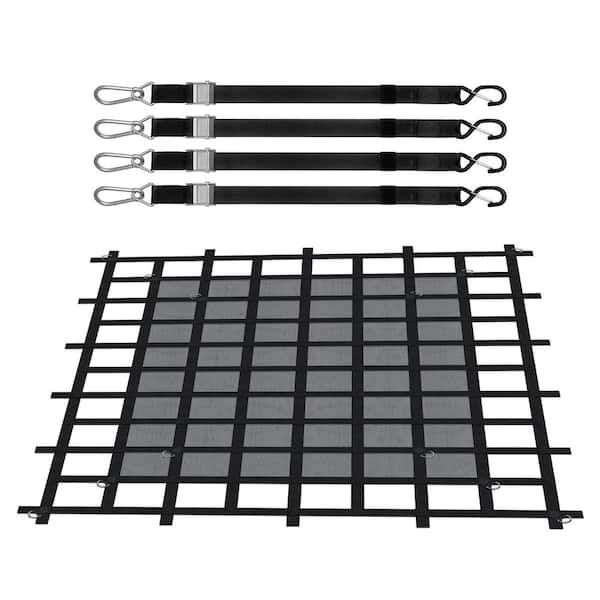 Heavy-Duty Cargo Net w/Mesh 6 ft. x 4.7 ft. Truck Net Cap. 1100 lbs. w/Cam Buckles and S-Hooks/Chain for Pickup Trucks