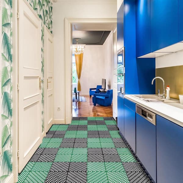 Interlocking Drainage Mat Floor Tiles Rubber Interlocking Gym Flooring Tiles 12 x 12 x 0.5 in. (25 Pcs, 25 sq ft Green)