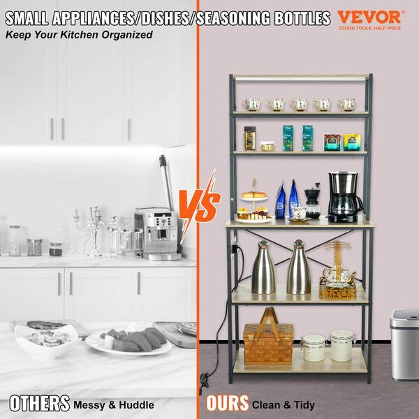 Kitchen Bakers Rack 6-Tier Microwave Oven Storage Cabinet Power Outlet