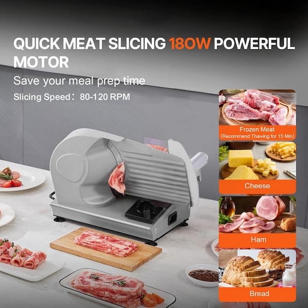 Meat Slicer 180 Watt Electric Deli Slicer with 7.5 in. SUS420 Stainless Steel Blade and Blade Guard for Home Use Silver