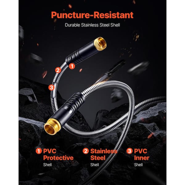 Metal Garden Hose. Fitting Size x 200 ft., Rust Proof Stainless Steel Water Hose, Heavy Duty Backyard Hose