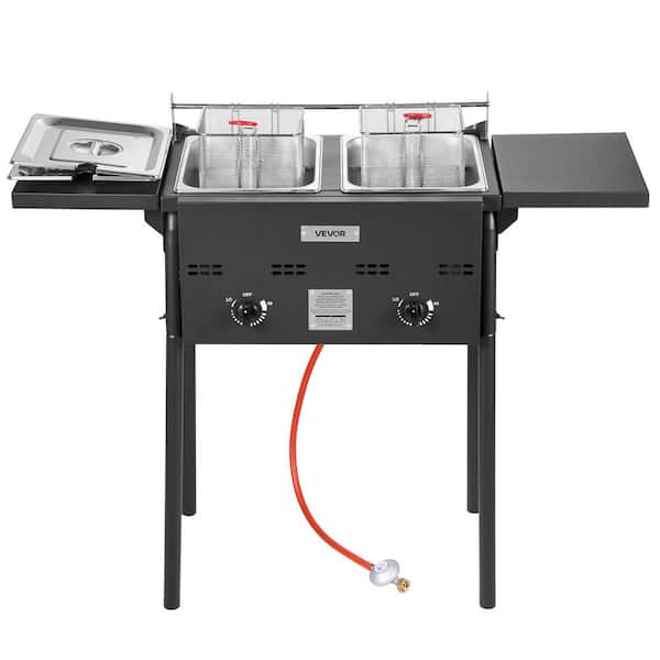 Outdoor Propane Deep Fryer Double Burners Commercial Fryer 16 qt. Stainless Steel Cooker