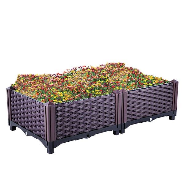 Plastic Raised Garden Bed 9 in. H Flower Box Kit Purple Rattan Style Raised Planter Boxes Set of 2 Raised Garden Planter