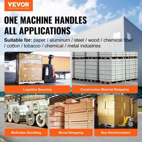 Pneumatic Strapping Tool, for 1/2 in.-3/4 in. W PET Plastic Belt, Packaging Strapping Machine, with 3500N Max Tension