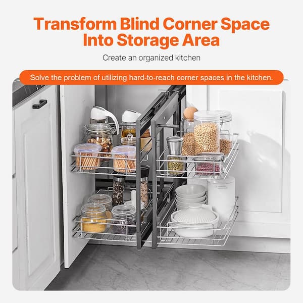 Pull Out Blind Corner Cabinet 15 in. Opening Chrome Soft Close 4-Shelf Slide Out Kitchen Cabinet Organizer