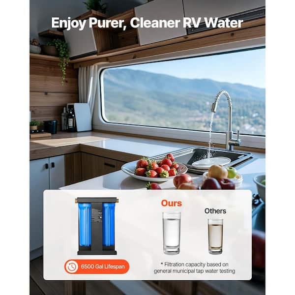 RV Water Filtration System, 2-Cartridge Water Filter System for Campers, RV Filter with Bracket for RVs, Boats, Vans