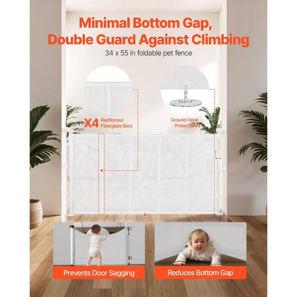 Retractable Baby Gate, 34.2in. Tall Mesh Baby Gate, Extends Up to 60 in. W Retractable Gate for Kids or Pets