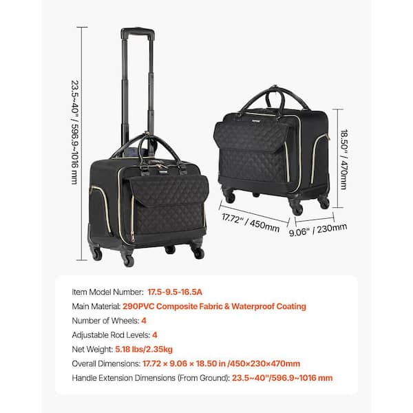 Rolling Laptop Bag Fits Up to 17.3 in. Laptop Wheeled Briefcase Roller Computer Tote Bag Handle Laptop Case (Black Gold)