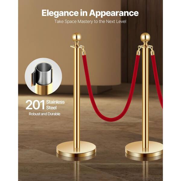 Stanchions and Velvet Ropes 4 Pcs, Hollow Base with Stainless Steel Post, 3 Red Velvet Ropes and Posts