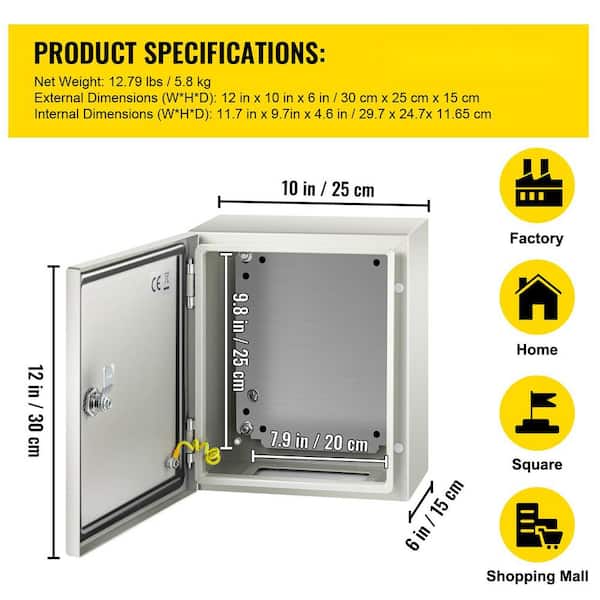 Steel Electrical Enclosure 12 in. x 10 in. x 6 in. Reinforced Lock and Hinge Electrical Box with Mounting Plate, Gray
