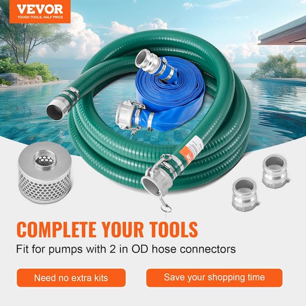 Suction Hose Kit for Water Pump with 2 in. x 65 ft. Blue Backwash Hose Strainer Groove Adapter Utility Accessory