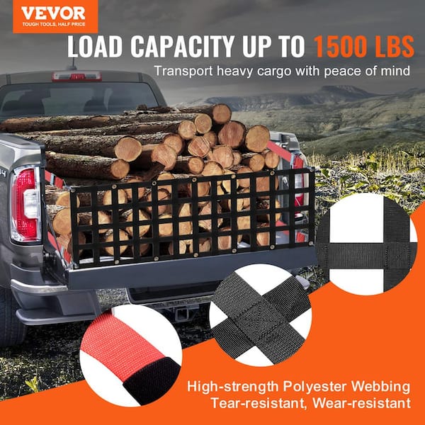 Tailgate Net, 54 in. x 18 in., Rope, Heavy Duty Cargo Net for Truck Bed with 4 Adjustable Telescopic Straps, Extendable