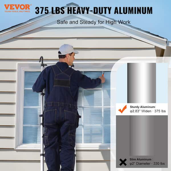 Telescoping Ladder, 16.4 ft. Aluminum Lightweight Extension Ladder, Multi-Button Retraction Collapsible Ladder, 375 lbs.