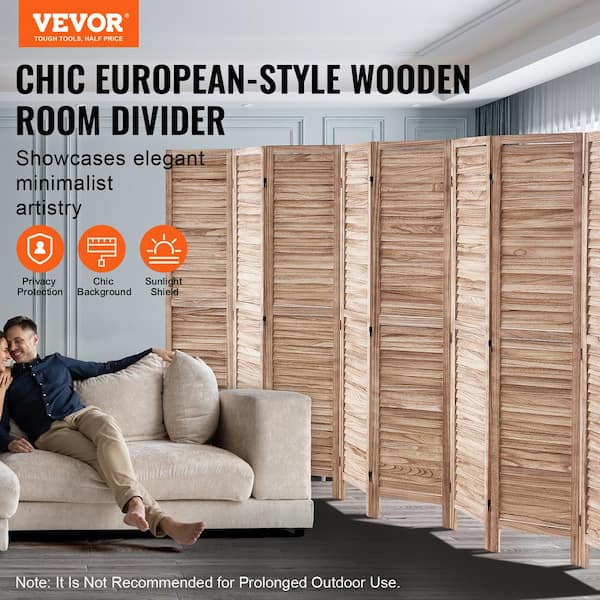 Wood Room Divider, 8 Panel Wood Folding Privacy Screen, 66.9 in. Tall Indoor Louvered Partition Divider, Portable