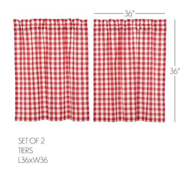 Annie Buffalo Check Red White 36 in. W x 36 in. L Cotton Light Filtering Rod Pocket Curtain Window Panel Pair