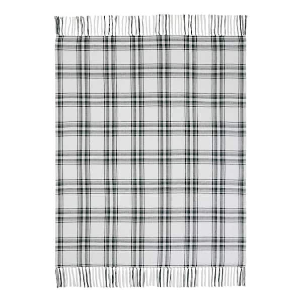 Harper Green White Taupe Plaid Woven Throw Blanket
