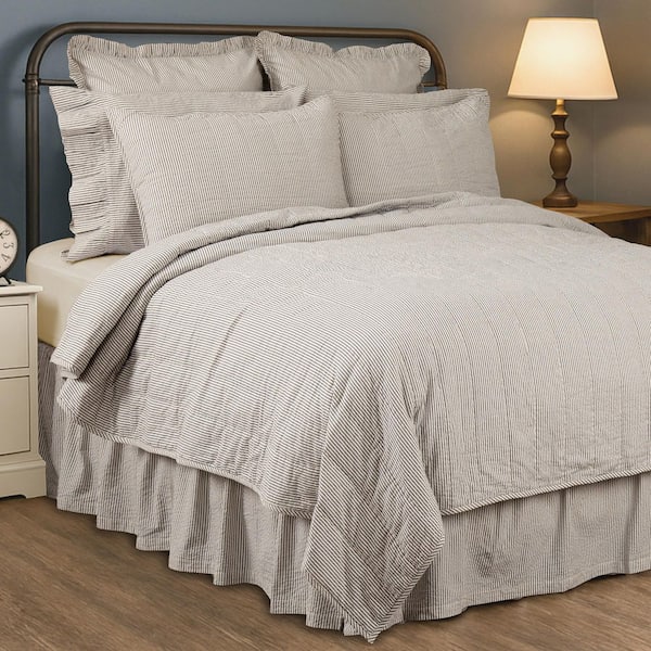 Hatteras Seersucker Blue Ticking Stripe Twin Cotton Quilt Coverlet