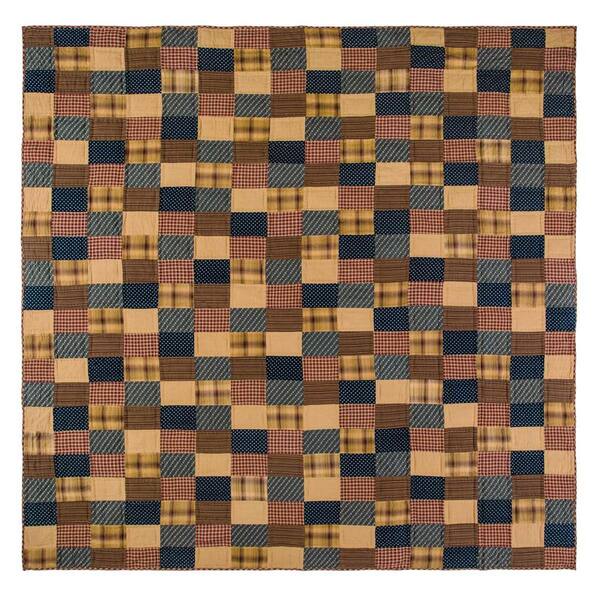 Patriotic Patch 3-Piece Red Khaki Navy Primitive Patchwork Cotton King Quilt Set