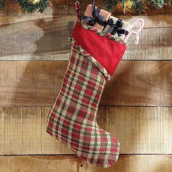 15 in. Cotton Claren Cherry Red Rustic Christmas Decor Stocking
