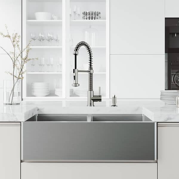 Edison Single Handle Pull-Down Sprayer Kitchen Faucet Set with Soap Dispenser in Stainless Steel