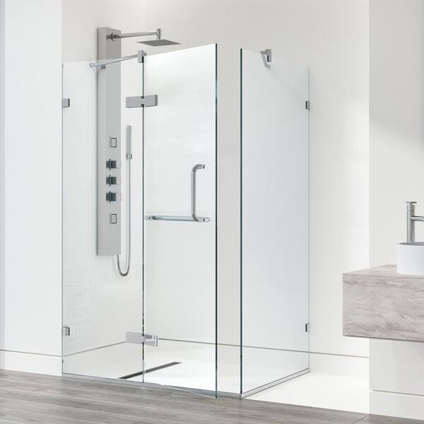 Monteray 30 in. L x 46 in. W x 73 in. H Frameless Pivot Rectangle Shower Enclosure in Chrome with 3/8 in. Clear Glass
