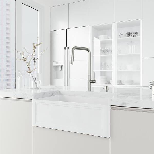 • Includes a soap dispenser for a seamless and elegant appearance