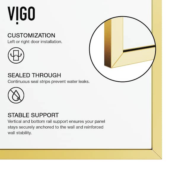 Zenith 34 in. W x 74 in. H Frameless Fixed Shower Screen Door in Matte Brushed Gold with 3/8 in. (10mm) Clear Glass
