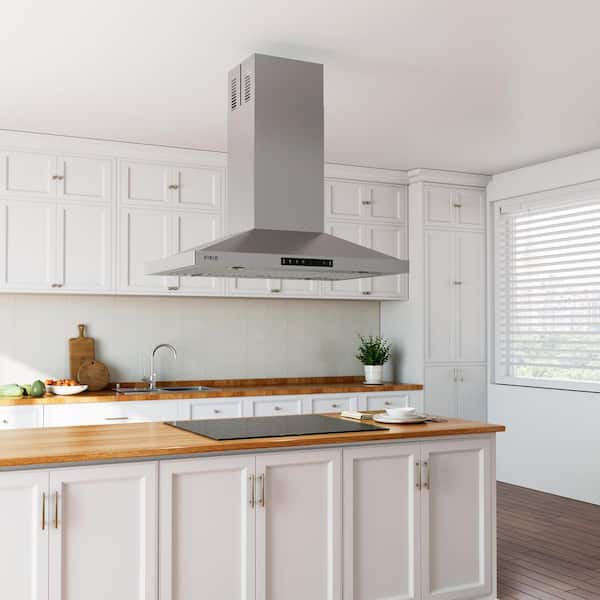 30 in. 380 CFM Convertible Island Mount Range Hood in Stainless Steel with 4 LED Lights Gesture Control, Carbon Filters