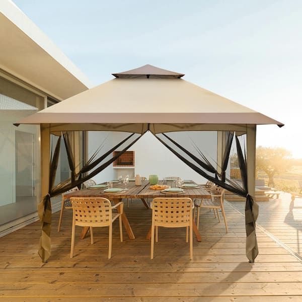 12 ft. x 12 ft. Beige POP UP Outdoor Canopy Tent with Removable Mesh Sidewalls and Portable Rolling Carrying Bag