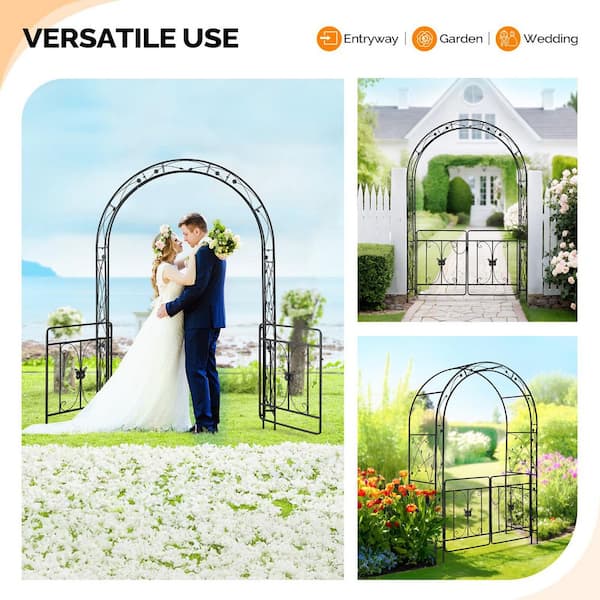 84 in. x 53 in. Garden Arbor Arch with Gate, Wedding Arch Archway for Ceremony Party, Trellis for Plant Climbing