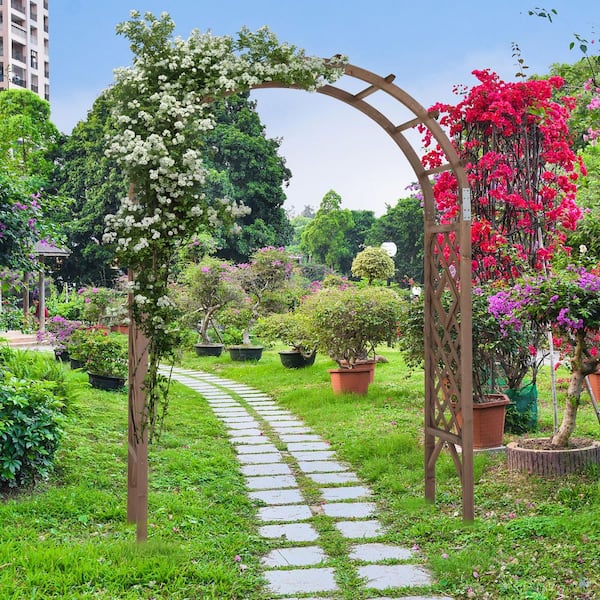 85 in. x 61 in. Wooden Garden Arbor Wedding Arch, 7 ft. Arch Backdrop Stand for Ceremony Wood Trellis for Plant Climbing