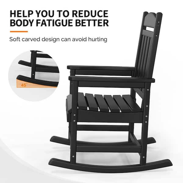 Black HDPE Heavy Duty 450 LBS Support Plastic Outdoor Rocking Chair