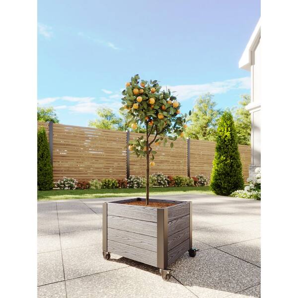 Urbana 22 in. x 18 in. x 18 in. Gray PVC Outdoor Planter with Wheels