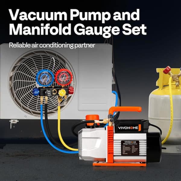 1 HP 9. 6CFM 2 Stage HVAC Vacuum Pump and 4 Way Manifold Gauge Kit with 5 ft. Hoses for R134a R12 R22 R502 R410a