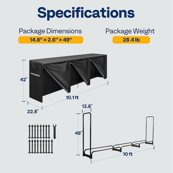 10 ft. Heavy Duty Outdoor Firewood Rack with Cover