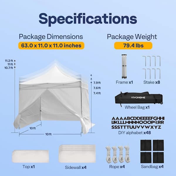 10 ft. x 10 ft. Pop-Up 4-Sided Commercial Canopy with DIY Alphabet