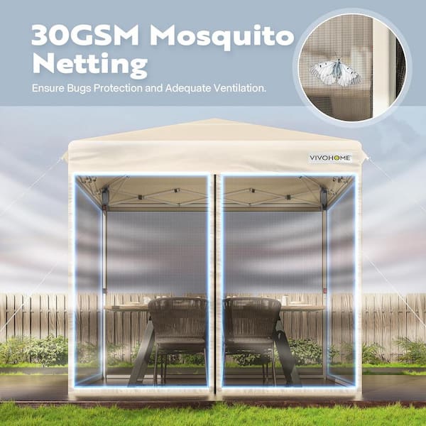 10 ft. x 10 ft. Steel Outdoor Beige Easy Pop-Up Canopy with Mosquito Netting and Roller Bag